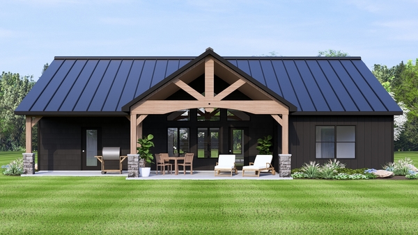 This contemporary, country-style plan, totaling 2,555 square feet, is perfect for a small family. The exterior features a welcoming front porch, and spacious rear porch, perfect for outdoor living. Inside, is an open concept living room, dining room, kitchen. The primary suite is located on this level, and is complete with a spacious private bathroom and a walk-in closet. A secondary bedroom is adjacent to the primary suite, and has a full bathroom nearby. An office is also located on this level, near the entry, and provides the perfect space to quietly work or relax.See our garage plan collection. If you order a house and garage plan at the same time, you will get 10% off your total order amount.